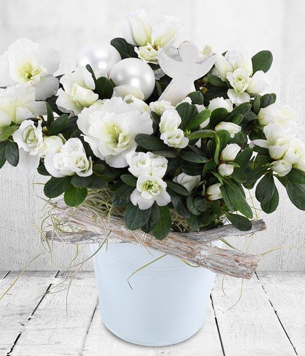 A white angel at the centre of a pure white Azalea plant. Simply beautiful.